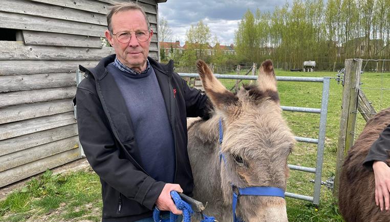 Il s’est ensuite lancé dans la vente de chevaux qu’il préparait pour les concours. Une fois à la retraite, Alain a tout revendu. Lorsque la mairie lui a demandé de l’aide pour s’occuper des ânes, notamment d’Alizée qui avait de nombreux problèmes de santé, il ne put refuser. Malheureusement, malgré de nombreux soins, Alizée est finalement décédée, et c’est Calinou qui a rejoint Apollo en 2019. « Il fallait le débourrer pour qu’on puisse faire monter les jeunes dessus, du coup c’est moi qui m’en suis occupé ». Ils sont désormais 5 dans l’équipe à s’occuper des ânes. « On a fait une petite formation à Frelinghien pour nous aider à prendre mieux soin des ânes ». Alain ne s’arrête pas là… il est aussi bénévole aux restaurants du cœur, fait aussi partie des distributeurs du journal municipal Estaires Info Plus. « J’aime être occupé » conclut le super bénévole.