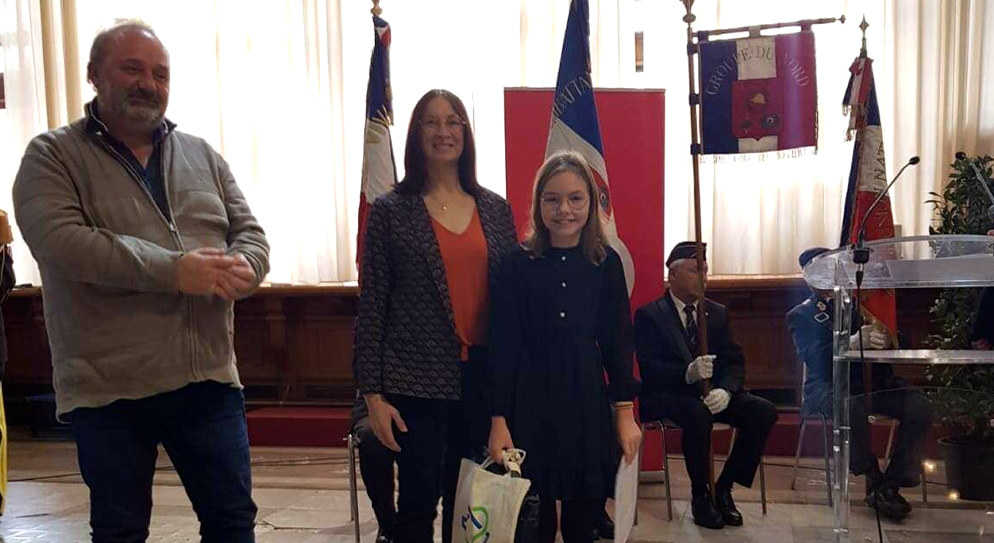 Plusieurs élèves furent récompensés au sein de l’école Notre-Dame lors de la cérémonie du 11 novembre. Jade Petyt, 10 ans, en classe de CM2, s’est d’autant plus distinguée puisqu’elle a été désignée lauréate pour représenter l’arrondissement. En compagnie de 6 camardes lauréats des autres arrondissements de la région, Jade s’est rendue à la Mairie de Lille pour lire le texte qu’elle avait écrit, devant des familles d’anciens combattants.
