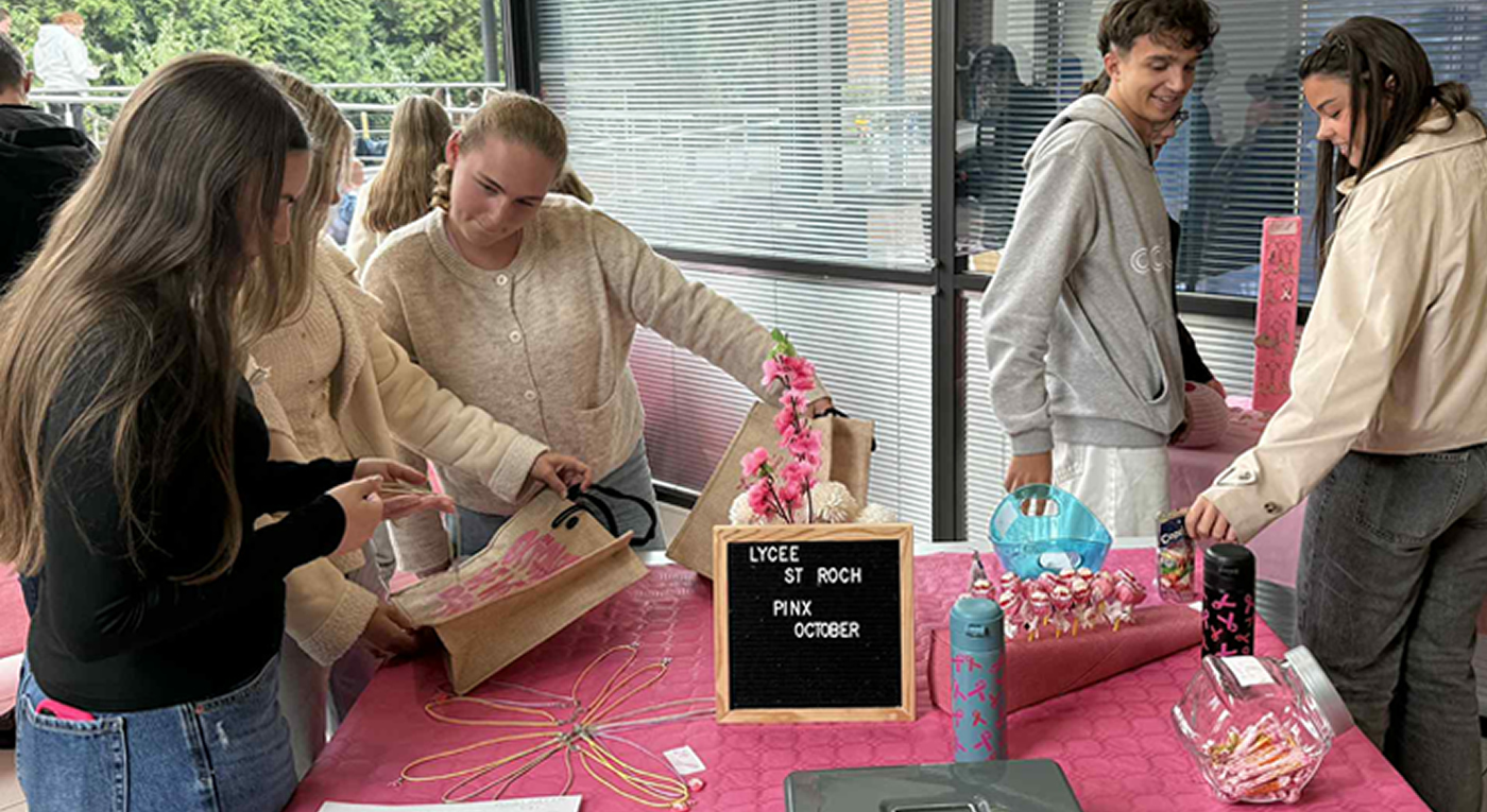 Cette année, le lycée Saint Roch a choisi d’élargir sa mobilisation autour d’Octobre Rose, du 12 septembre au 14 novembre, afin d’anticiper les vacances scolaires et les stages des élèves. L’objectif : s’informer, consulter et se mobiliser pour la lutte contre le cancer du sein.